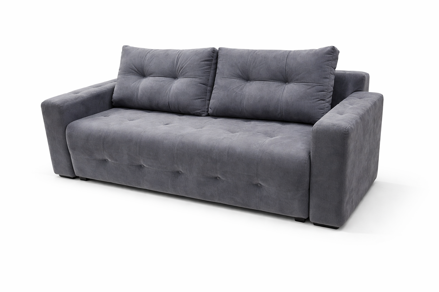 Всё в стильном и элегантном диване располагает к отдыху: и плавные линии подлокотников, и мягкие подушки, и обивка. Не менее продумано и наполнение модели. На диване с таким наполнением удобно сидеть и лежать, ведь оно обеспечивает полноценный отдых, в том числе ночной — с помощью механизма «еврокнижка» диван без труда превращается в полноценное спальное место.